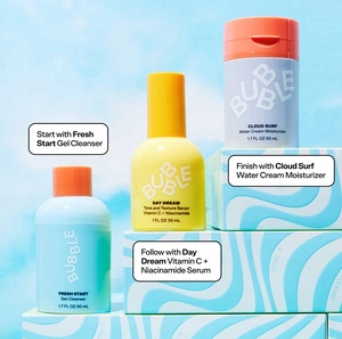 سێتی "ڕۆتینی چاودێری پێستی گەشاوەکردنی بڵق" سیستەمێکی ٣ پارچەییە کە بەرهەمەکانی تێدایە کە بۆ پەرەپێدانی پێستی درەوشاوە و درەوشاوە لە ڕێگەی پاککردنەوە و گەشاوەکردن و شێدارکردنەوە دیزاین کراوە. بە شێوەیەکی گشتی پاککەرەوەی جێڵی فرێش ستارت لەخۆدەگرێت بۆ لابردنی پیسی، سیرۆمی ڤیتامین سی + نیاسینایدی ڕۆژی خەون بۆ گەشاوەکردنی پەڵە ڕەشەکان و باشترکردنی تۆن، هەروەها شێدارکەرەوەی شێدارکەرەوەی سلام دانک بۆ خۆراکدانی پێست.