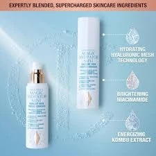 تەمێکی هایدرەتەری سیحراوی شارلۆت تیلبێری تەمێکی ئۆکسجین و شێدارکەرەوەی دەموچاوە کە بە شێوەیەک دروستکراوە کە درەوشاوەیی شەبنەمی خێرا دابین بکات و نیشانەکانی ماندوێتی دیجیتاڵی کەم بکاتەوە و پێست لە پیسبوون بپارێزێت. تایبەتمەندی تەکنەلۆژیای تۆڕی Hyaluronic Mesh بۆ بەرگریکردن لە ئاودان و پیسبوون، دەرهاویشتەی کۆمبو بۆ کەمکردنەوەی ماندوێتی دیجیتاڵی، هەروەها Niacinamide بۆ بەهێزکردنی بەربەستی پێست و باشترکردنی ڕوونی پێست. بۆ بەکارهێنانی، شووشەکە بە دووری ٦-٨ ئینج لە دەموچاوتەوە ڕابگرە، چاوەکانت دابخە و بەیانیان، ئێواران، یان بە درێژایی ڕۆژ بە بەخشندەیی بەسەر پێستی پاککراوەدا تەم بکە بۆ ئەوەی تازە بێتەوە و یارمەتی بەرهەمەکانی تری چاودێری پێست بدەیت باشتر هەڵبمژن.