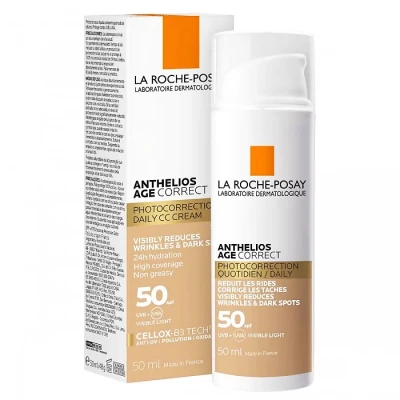 La Roche-Posay Anthelios Age Correct SPF50 چالاککەری پێستی تێدایە بۆ کەمکردنەوەی دەرکەوتنی چرچ و لۆچی و پەڵەی ڕەش و باشترکردنی لاستیکی پێست گونجاوە بۆ جۆرە پێستە پێگەیشتوو و هەستیارەکان، فۆرمولەکە یارمەتیدەرە بۆ نەرمکردنی دەرکەوتنی هێڵە وردەکان بە شێوەیەکی دیار