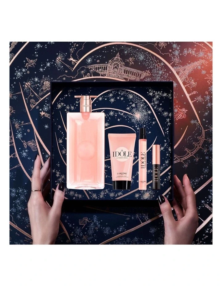 ئەم سێتە لوکسە سنووردارە تایبەتمەندییە سەرنجڕاکێشەکانی ئایدۆل ئۆ دی پارفوم (100 مل)، بۆنێکی درەوشاوە کە نۆتەکانی لیمۆ و گوڵ و یاسمین تێکەڵ دەکات. هەروەها سێتەکە کرێمی پاوەر ئایدۆڵ (50ml) لەخۆدەگرێت بۆ خۆراکدان و بۆنکردنی پێستت و سپرای گەشتیاری گونجاوی ئایدۆڵ ئۆ دی پارفوم (10ml) بۆ بۆنکردن لەکاتی ڕۆشتندا. ئەم سێتە تەواو گونجاوە بۆ دیاریکردن یان چارەسەرکردنی خۆت، ئەم سێتە بڕێک بەهێزکردن و وردبینی دەهێنێتە وەرزی جەژنەکەتەوە.