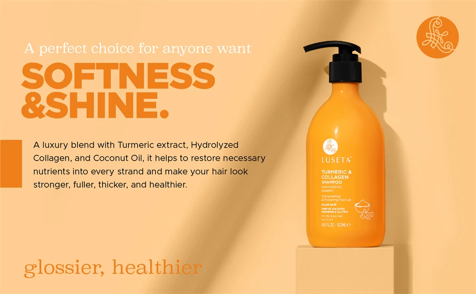 شامپۆی کۆلاجینی زەردەچەوەی لوسێتا بەکاردێت بۆ بەهێزکردن و ئەستوورکردن و قەبارەکردنی قژی تەنک یان ورد، لە هەمان کاتدا چارەسەری نیگەرانییەکانی چەوری پێستی سەر دەکات بە ڕوونکردنەوە و خۆراکدانی پێستی سەر. شامپۆکە یارمەتیدەرە بۆ کەمکردنەوەی شکاندنی قژ و گەشەکردنی تەندروست و گەشەکردنی قژ و زیادکردنی بریقە و بریقە بۆ قژی مات. هەروەها بێ سولفات و بێ پارابین و سەلامەتە بۆ ڕەنگ.