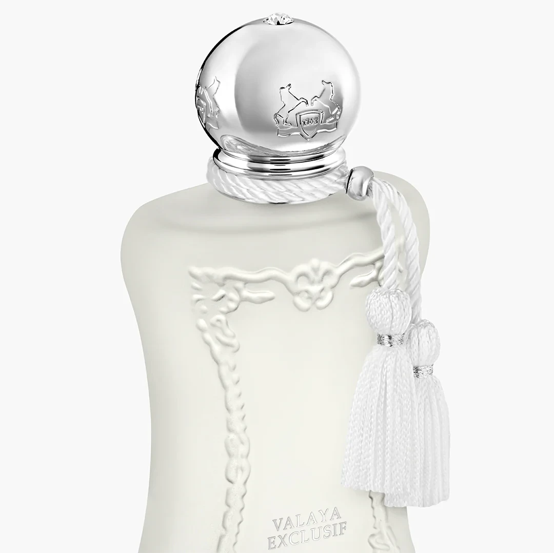 بۆنێکی لوکس و پاڵاوتە، ئاورایەکی چڕ دەدرەوشێنێتەوە کە ڕەنگینیی ژنانەی بەرجەستە دەکات بۆ جوانیناسانی هاوچەرخ کە ئارەزووی هەموو ئەمانە دەکەن. ڤالایا ئێکسکلوسیف، دروستکردنێکی ناوازە و لە هەمان کاتدا گشتگیرە کە گوڵاوی دارە، پەردە لەسەر سەرنجڕاکێشیی هەستیار و مەخمەلی بادەم، سووکایەتی گوڵە سپییە شەفافەکان و هێزی پاڵاوتەی دارە سپییە کرێمییەکان لادەبات. بەهۆی نۆتەکانی پاودەرەوە بەرزکراوەتەوە، گەرمییەکی سەرنجڕاکێش دەدرەوشێنێتەوە و هەستێکی نەرمی مەخمەلی دەدات کە بە ناسکی پێست دەگرێتەوە.